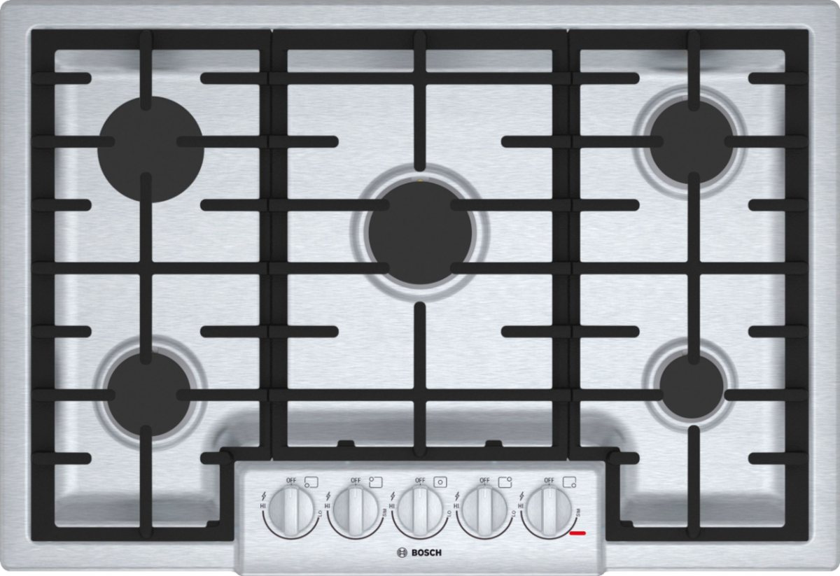 Bosch 800 Series 30" Gas Cooktop-Stainless Steel with 5 burners, metal knobs and sealed burnersRead More