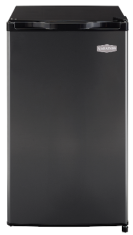 This convenient yet spacious 4.5 cu.ft. All Refrigerator is a compact size that fits anywhere. This sharp fridge is EnergyStar approved and is ideal for an apartment, house or student residence. This product features 1 full tempered glass slide-out shelf & 2 versatile half shelves, adjustable CanBin door storage and automatic defrost operation with a useful transparent crisper basket. All Marathon appliances are “Engineered to Perform” and are backed by the Industry’s Best 2 Year Parts and Labour Warranty.